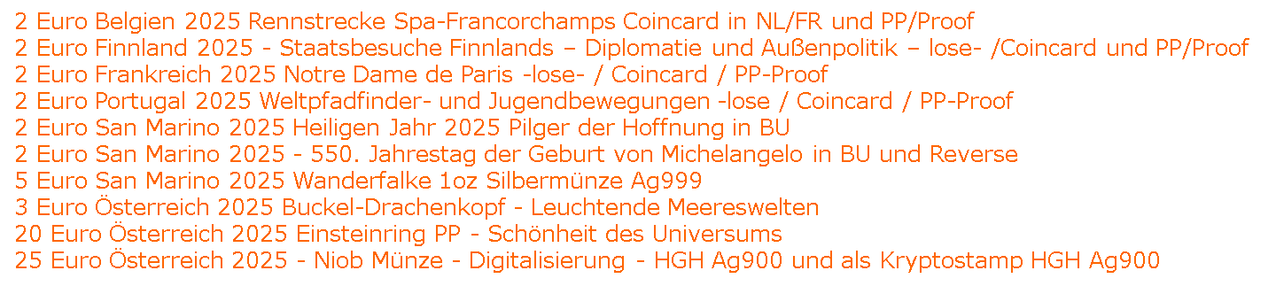 Nachfolgend finden Sie die Artikelliste (kein Menü) der aktuellen Vorverkaufs-Angebote von Euromünzen und Zubehör. Sollten Sie Informationen benötigen, haben Anmerkungen oder Anregungen nutzen Sie die nachfolgende Kontaktmöglichkeit.